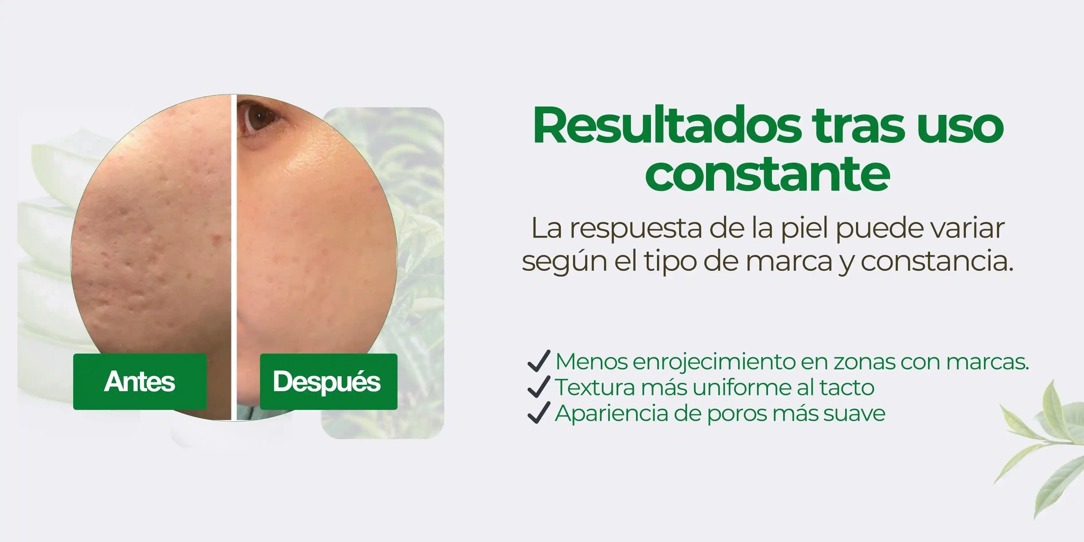 Después de unas semanas usando el gel, la textura se siente mucho más pareja y la piel más calmada.